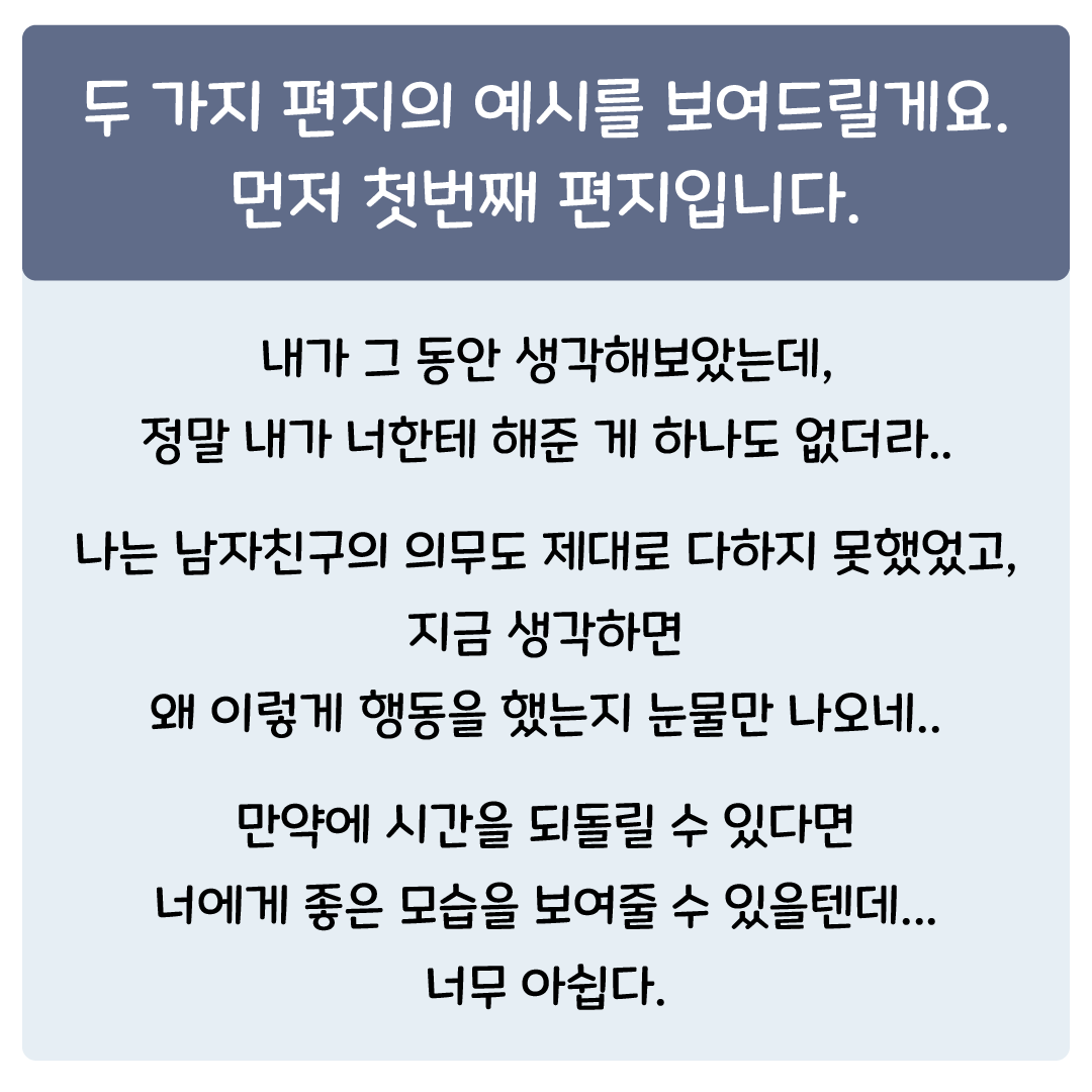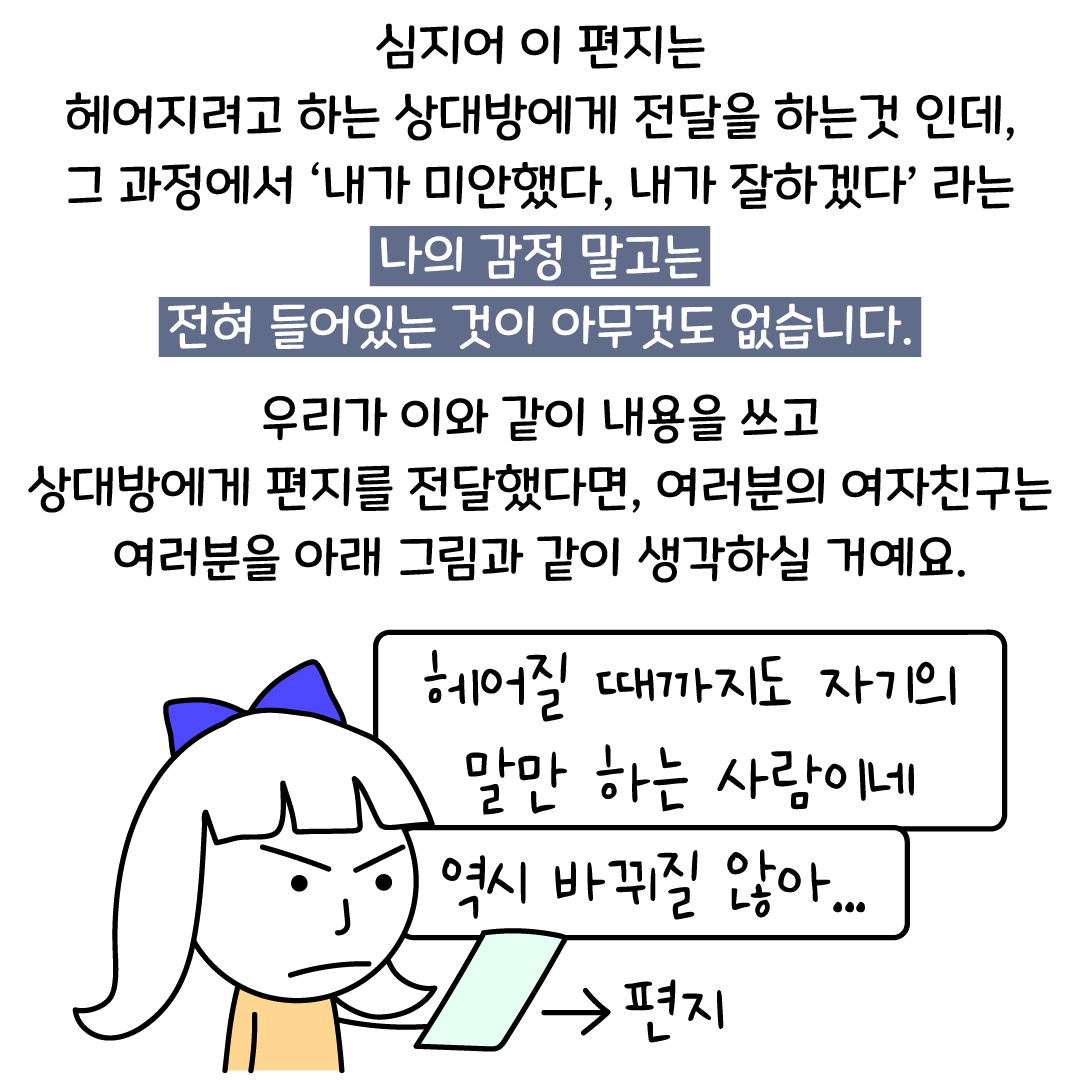 헤어진 여자친구 잡는 편지에도 정확한 내용이 필요해요