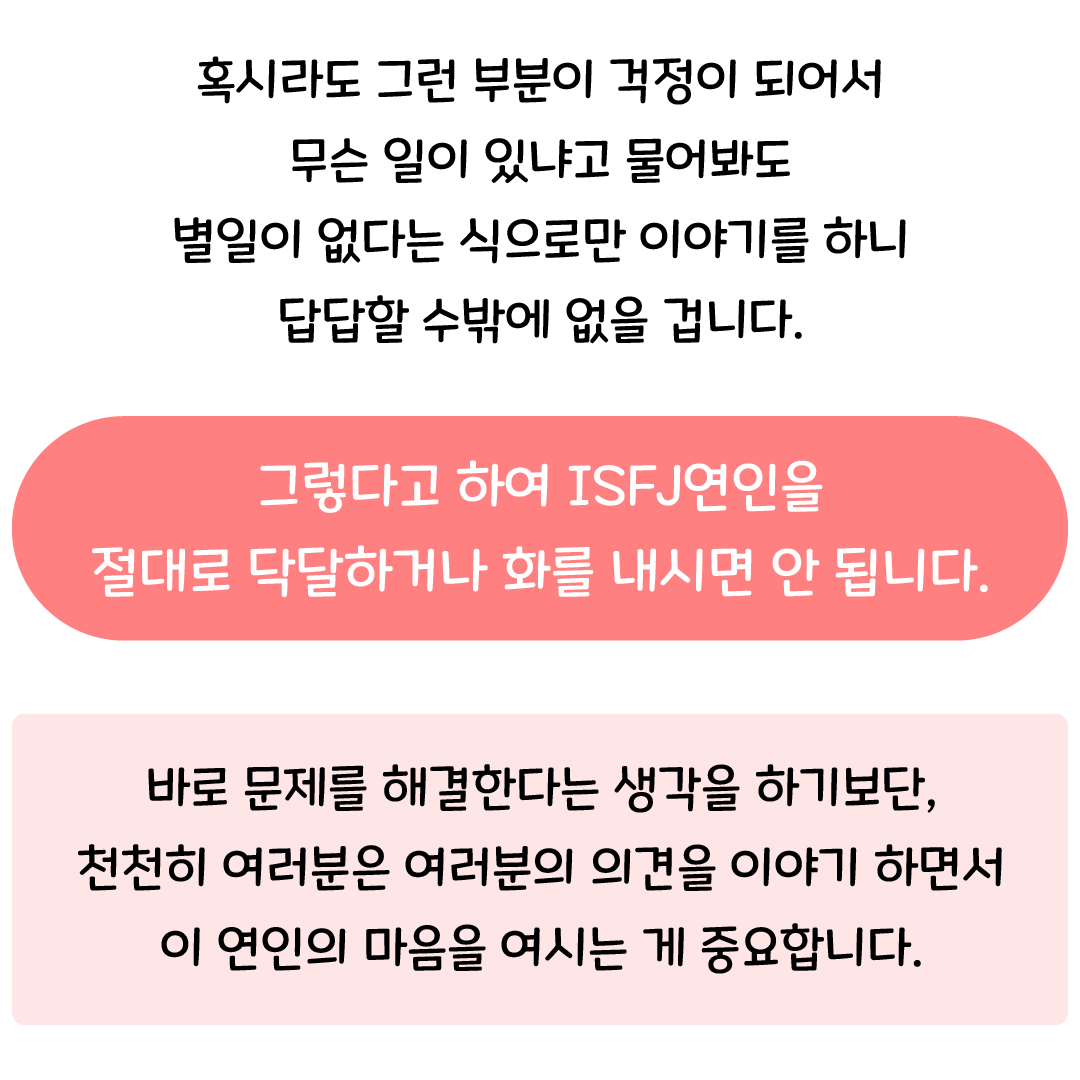 ISFJ 특징 및 팩폭, 장점이 될 수도 있지만 단점이 될 수도 있는 것은?
